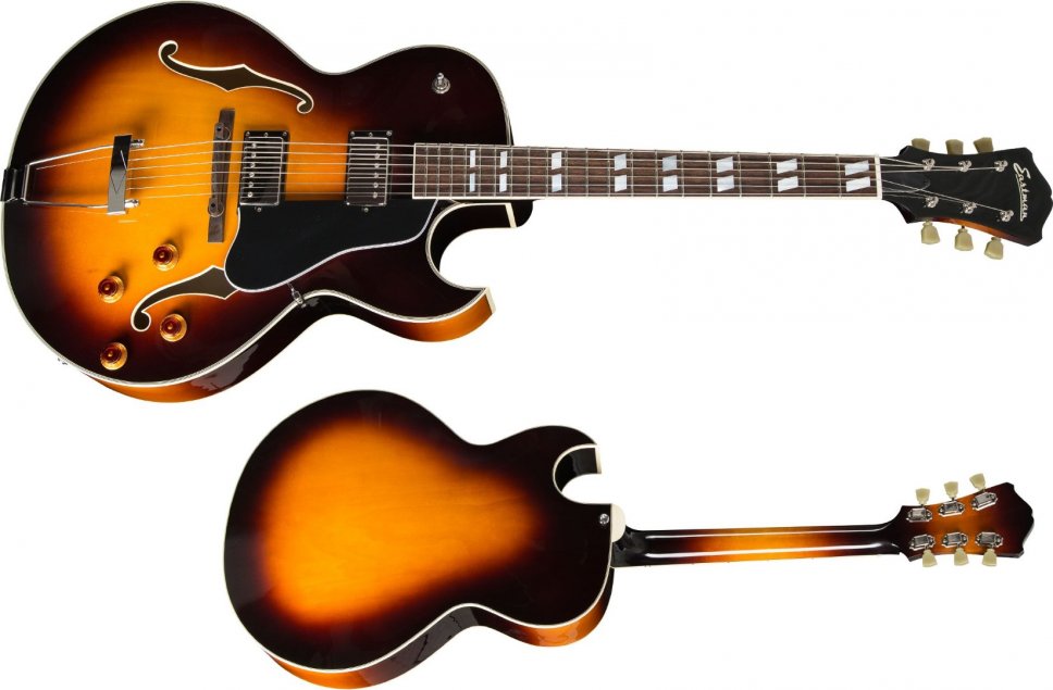 La AR372CE, disponibile in 3 colorazioni, ricalca in effetti tutte le specifiche della “grande signora del Jazz”, quindi l’unione di acero e palissandro per il manico, la scala in 24 3/4″, l’elettronica e tutto il resto.