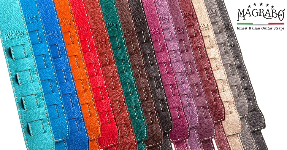 La nuova linea di tracolle professionali per chitarra in vera pelle, fatte a mano. Alta qualità,100% made in Italy in ben 34 colorazioni.