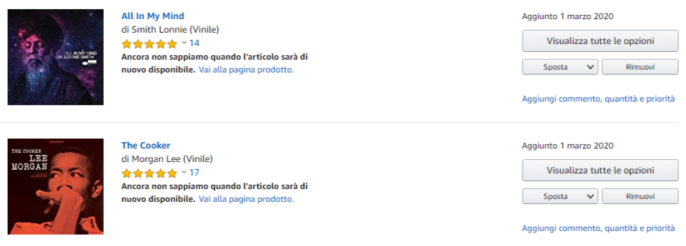 Ovviamente Amazon non è l’unico metodo di approvvigionamento da questo punto di vista, ma vista la chiusura dei negozi fisici, è sicuramente uno dei mezzi principalmente usati da chi acquista musica in questo formato (vuoi anche per le più facili politiche di reso…).
