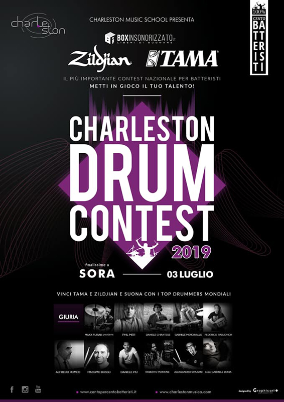 Una giuria d’eccezione decreterà il vincitore tra quanti saranno stati selezionati per la finale del 3 luglio in base ai video inviati: a giudicare, con il presidente Maxx Furian e i due organizzatori, ci saranno Phil Mer, Daniele Chiantese, Federico Paulovich, Massimo Russo, Daniele Piu, Roberto Perrone, Lele Boria e Alfredo Romeo (per poter partecipare al concorso: http://www.centopercentobatteristi.it/charleston-drum-contest-2019/).