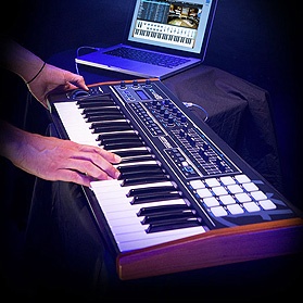 La KeyLab è un controller MIDI studiato per integrarsi perfettamente con i virtual instrument di Arturia, peraltro basati sulla fortunata tecnologia proprietaria a modelli fisici TAE, attraverso il software Analog Lab fornito gratuitamente a corredo. L’interazione tra la KeyLab e la Analog Lab consente di ottenere un sistema ibrido con l’immediatezza del sintetizzatore hardware e la flessibilità del software. Terminata l’installazione dei software, basta collegare la KeyLab al proprio personal computer tramite la porta USB, e all’avvio della Analog Lab tutti i controlli fisici dello strumento sono assegnati automaticamente a una serie di parametri del virtual instrument selezionato.Per un uso come Controller MIDI generico, potete assegnare i controlli fisici sul pannello attraverso i menu visualizzati sul display, oppure impiegare l’utility MIDI Control Center, studiata da Arturia per la configurazione e la creazione di scene nella KeyLab dal mondo esterno. Tutte le Arturia KeyLab sono alimentabili tramite USB, oppure con un alimentatore di rete acquistabile separatamente, e oltre all’interfaccia USB tutte offrono un parco connessioni composto da porte MIDI I/O, prese per tre pedali Sustain, Expression e uno assegnabile, infine è presente una presa minijack per il collegamento di un Breath Controller.