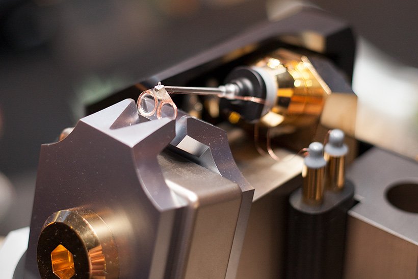 Proprio per questo, i progettisti Audio-Technica hanno pensato di spostare le bobine direttamente dalla parte opposta, ovvero all’inizio (o alla fine, dipende da come la si vede) del cantilever, proprio sopra lo stilo che corre nei solchi.