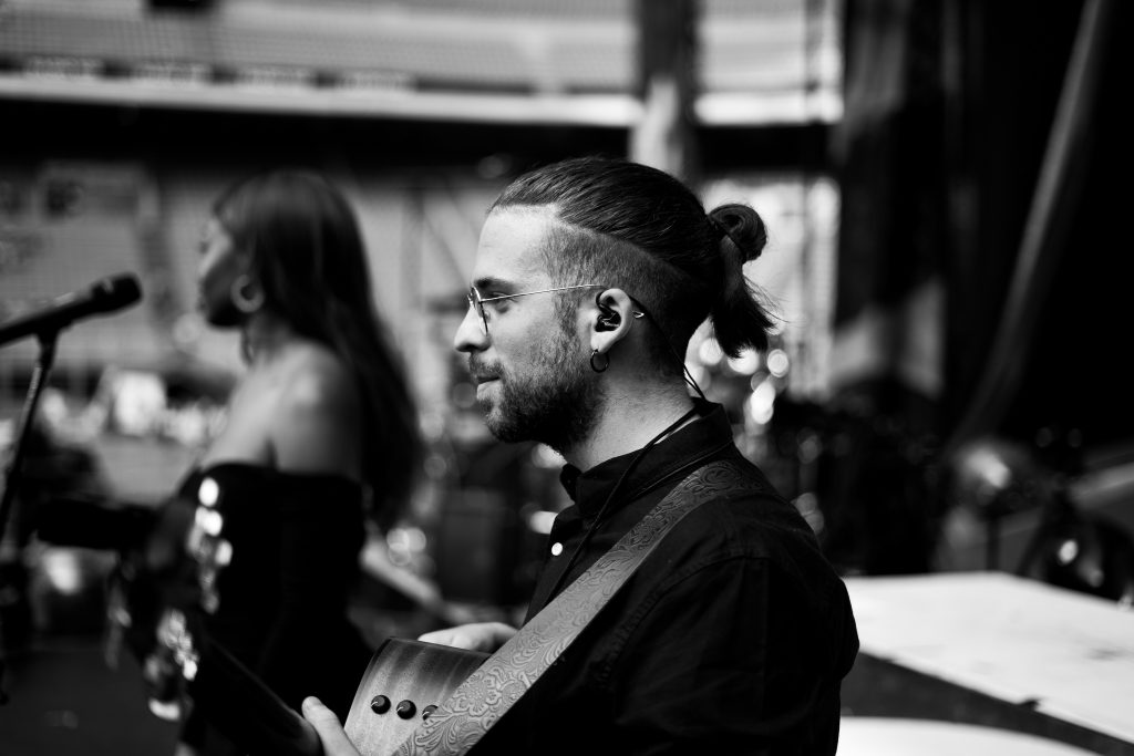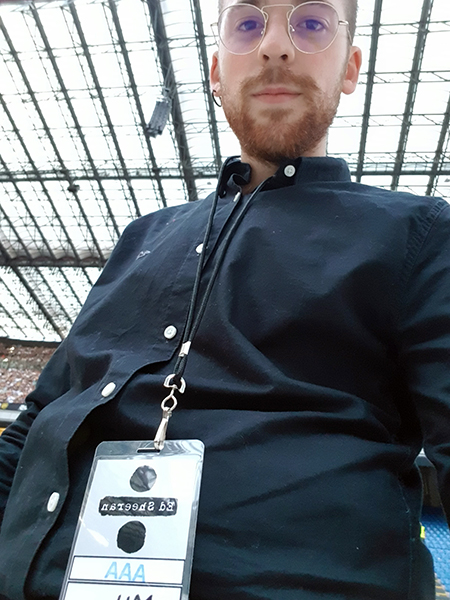 Il manager di palco intorno alle 18:30 ci viene a chiamare, così ci prepariamo e ci posizioniamo nel backstage del palco dove lo staff ci prepara per l’opening.