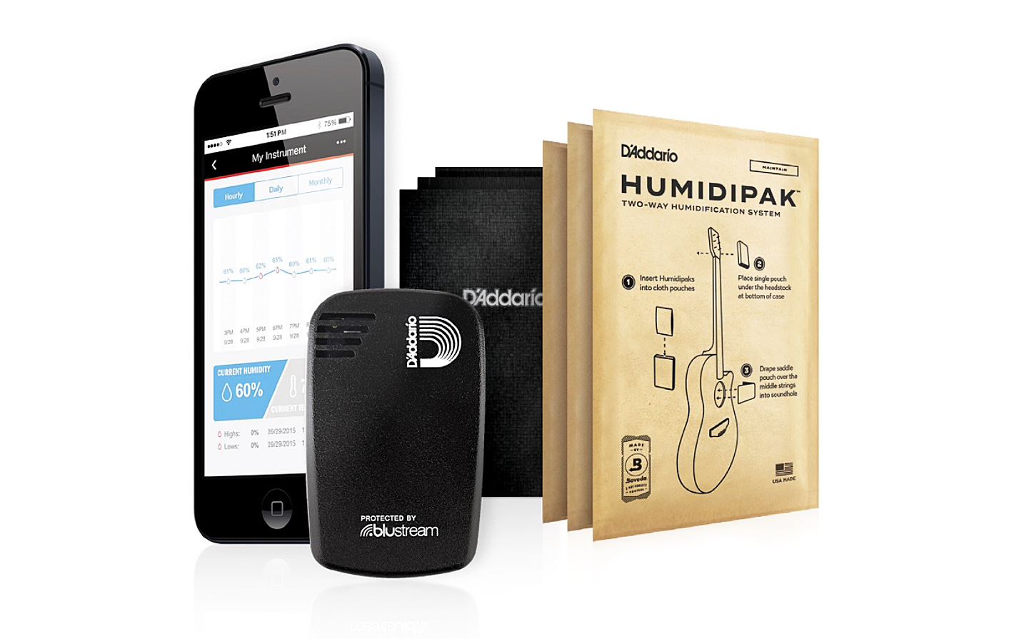 All’interno del kit il minuscolo rilevatore Humiditrak D’Addario con tecnologia Blustream, in grado di trasmettere via Bluetooth al proprio smartphone dati aggiornati sullo stato della temperatura, umidità e possibili urti.