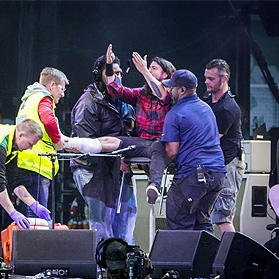 Che Dave Grohl fosse un frontman fuori dall’ordinario non è mai stato un mistero, indubbiamente uno degli ultimi personaggi capaci di portare avanti con fedeltà e dedizione la bandiera del rock nella sua accezione più convinta, ieri in Svezia il leader dei Foo Fighters ha compiuto una nuova “prodezza” degna degli albi della storia della musica.Chiamiamola dedizione, oppure chiamiamola follia, comunque si voglia leggere l’accaduto Dave Grohl ne uscirà in maniera eroica. Durante il concerto dei Foo Fighters tenutosi ieri, 12 giugno, a Göteborg, Dave Grohl è caduto dal palcoscenico durante il brano “Monkey Wrench”, per essere soccorso poi nel backstage e portato successivamente in ospedale con una gamba fratturata.