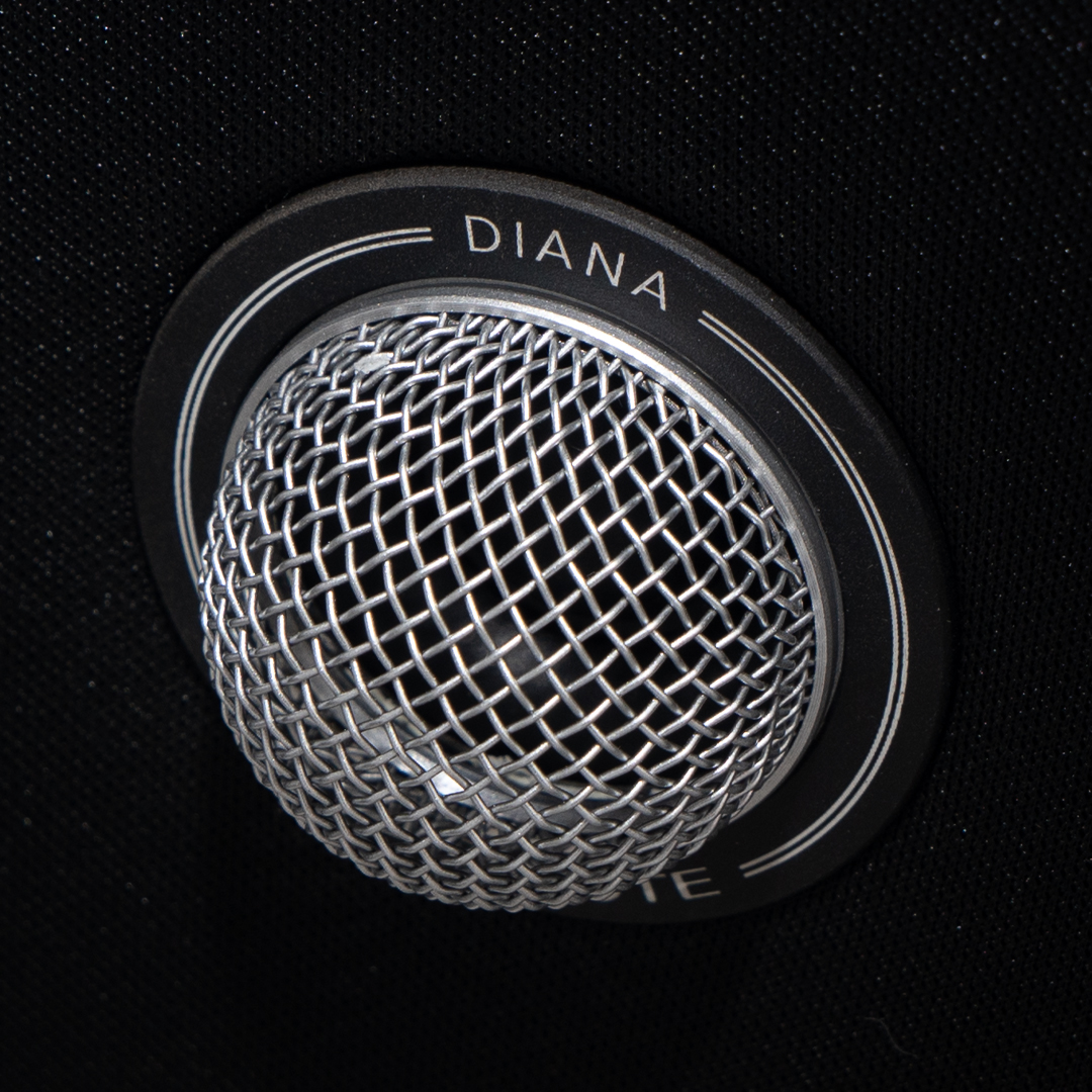 Il cabinet di Diana II include quattro risonatori meccanici semi-ellittici, che riducono ulteriormente le vibrazioni, migliorando la stabilità strutturale e la definizione sonora.