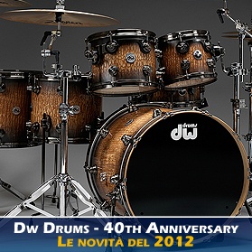 DW Drums è una realtà consolidata da decenni nel mondo degli strumenti a percussione, proprio questo 2012 segna il suo 40° anniversario e per festeggiare questo appuntamento DW introduce alcune interessanti novità: il nuovo drumset in serie limitata della Collector’s Series in finitura Exotic Tamo Ash (frassino), l’introduzione di una nuova configurazione fusti nella Collector’s Series in maple/mahogany (acero/mogano) e una serie “upgrade” per i pedali della serie 5000, con i nuovi TD4 (Turbo) e AD4 (Accelerator), sia doppi che singoli.