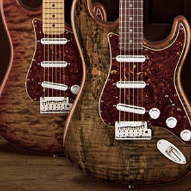La Quilt Maple-Top è una strato con corpo in ontano, top in acero quilt, finiture realizzate a mano. Il manico è in acero fiammante AAA con forma soft V. 22 tasti narrow jumbo, capotasto in graffite e tre single coil Custom Shop Fat ’50 completano questa stupenda chitarra. La Spalted Maple-Top ha caratteristiche identiche alla precedente con l’unica differenza del top che in questo caso è in acero spalted. La Walnut-Top è una strato con corpo in ontano, top in noce, finiture realizzate a mano. La tastiera è in palissandro e le meccaniche sono cromate con chiavi in ebano. A completare il tutto troviamo 22 tasti narrow jumbo, capotasto in graffite e tre single coil Custom Shop Fat ’50.Per quanto riguarda invece le Master Design l’intento dell’azienda californiana è quello di fornire una serie di strumenti realizzati dai migliori liutai al mondo esattamente come le costruirebbero per loro stessi. Le chitarre sono state realizzate sotto la guida di John Cruz e Todd Krause, nomi noti a tutti gli addetti ai lavori. I modelli rilasciati sono due: la 1950s Relic Stratocaster e la 1963 Relic Stratocaster La 1950s Relic Stratocaster ha il corpo in ontano finitura laccata in tonalità Moss Green. Il manico e la tastiera sono in acero con 21 tasti narrow jumbo. La chitarra presenta un trattamento relic ed è completata da 3 pickup single coil Fender Custom Shop Fat’50. La 1963 Relic Stratocaster, molto simile alla 1950s, ha il corpo in ontano con finitura laccata in tonalità Sunbrust. Il manico è in acero e la tastiera in palissandro con 21 tasti jumbo. Anche in questo caso la chitarra presenta un trattamento relic ed è completata da 3 pickup single coil Fender Custom Shop Fat’50.