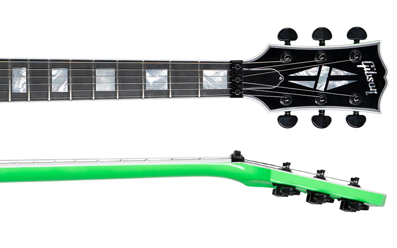 Le nuove Axcess Custom offrono ovviamente il Floyd Rose come caratteristica distintiva. Da sempre l’applicazione di questo ponte ha destato più di una perplessità negli amanti delle classiche forme Les Paul, ma d’altronde risolve quella “mancanza” che tanti appassionati del suono Gibson dalle prospettive più “moderne” hanno sempre sentito sullo strumento (e ovviamente l’eventuale ponte Bigsby non poteva ovviare a certe pretese).
