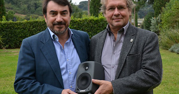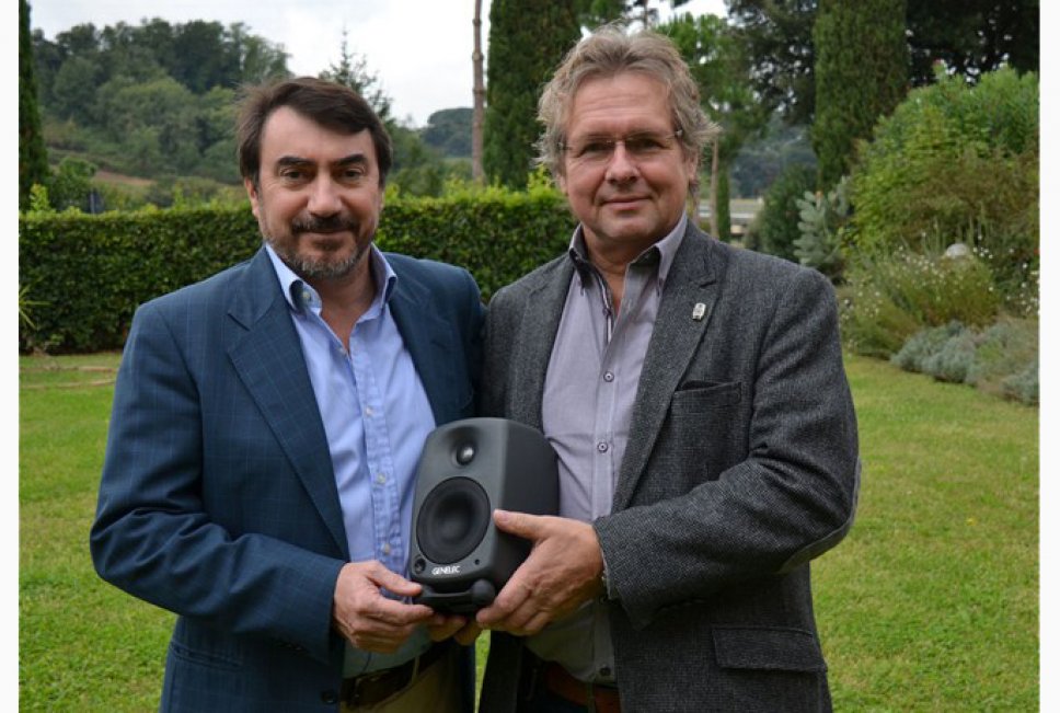 Francesco Borsotti (a sinistra), durante la presentazione della distribuzione per l’Italia di Genelec
