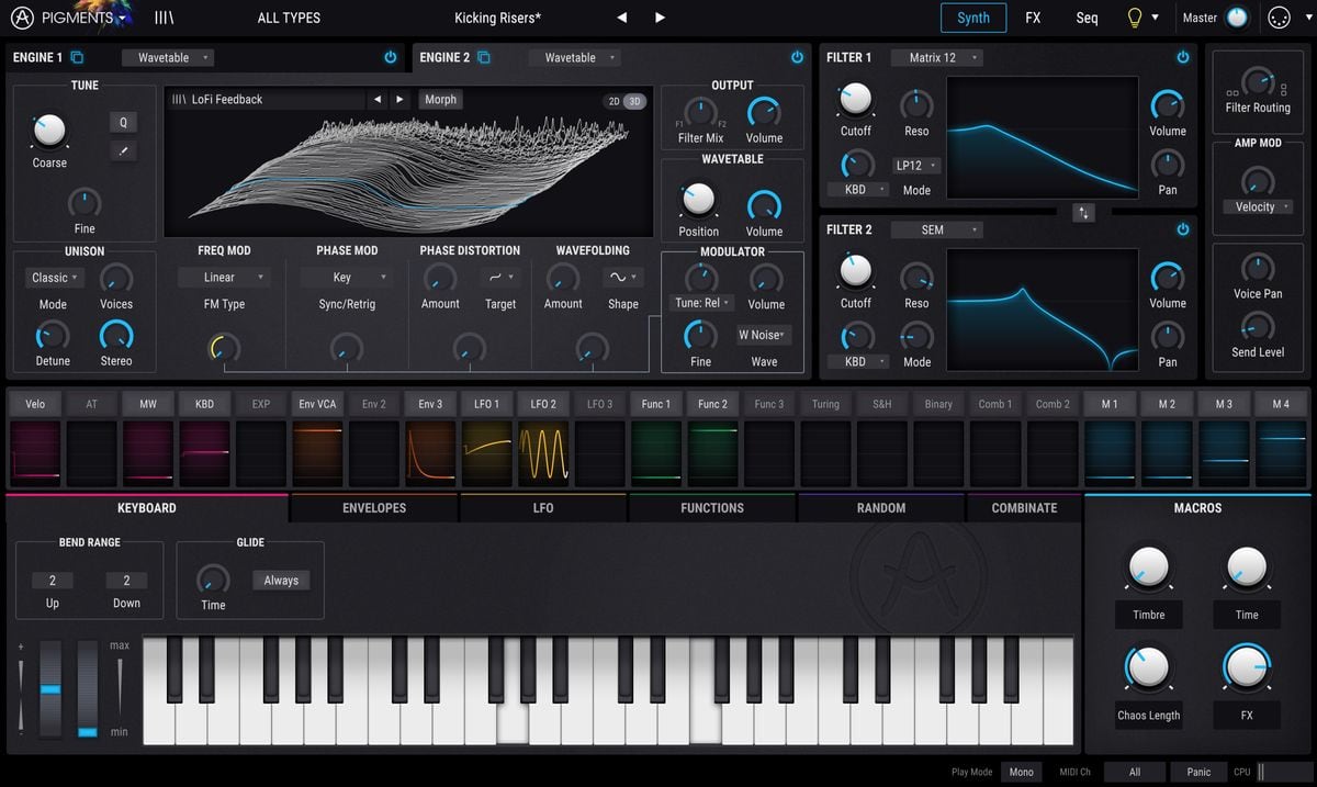 La generazione sonora si avvale di due componenti distinte ma correlate, un motore sonoro a Wavetable e un generatore Virtual Analog. Entrambi beneficiano della ormai ventennale esperienza degli ingegneri di Arturia nell’analisi ed emulazione di strumenti che hanno fatto la storia, e la scheda tecnica lascia intuire che le potenzialità del nuovo software sono vaste.