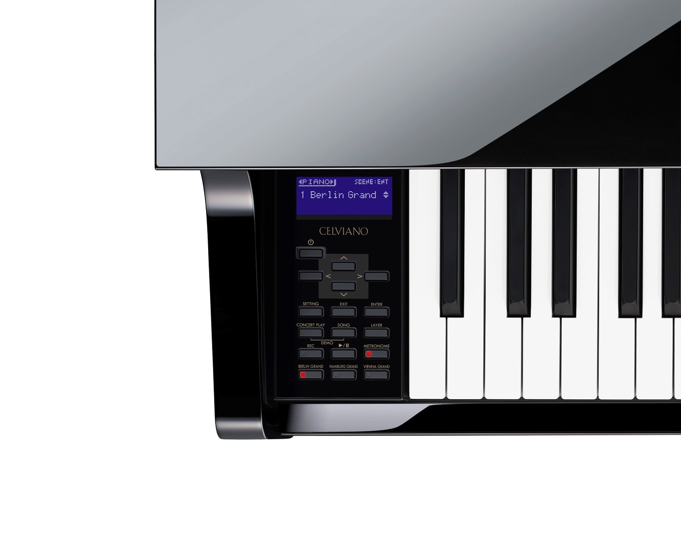 Per maggiori informazioni consultate la pagina ufficiale dei pianoforti Casio Celviano Grand Hybrid.