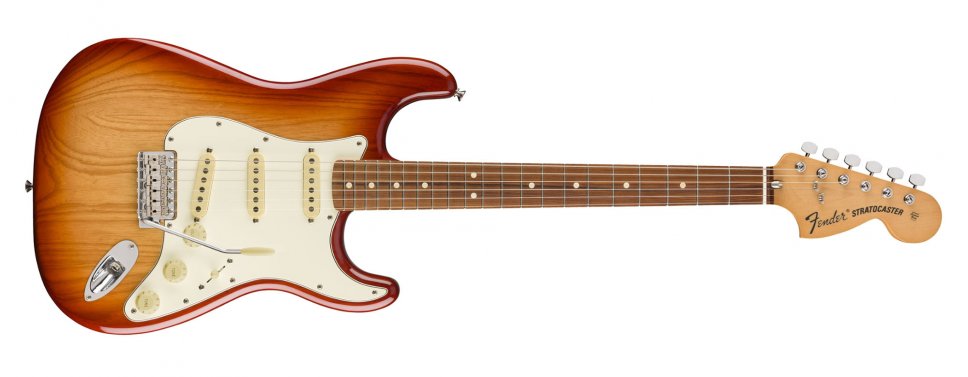 Il classico “palettone” fa la sua giusta figura sulla Vintera ’70s Stratocaster, anch’essa fedele alle origini fin dove possibile, con cassa in frassino, tre pickup single-coil ’70s Strat vintage, tremolo sincronizzato vintage a sei punti, manico in acero con profilo a C “Early 70s”.