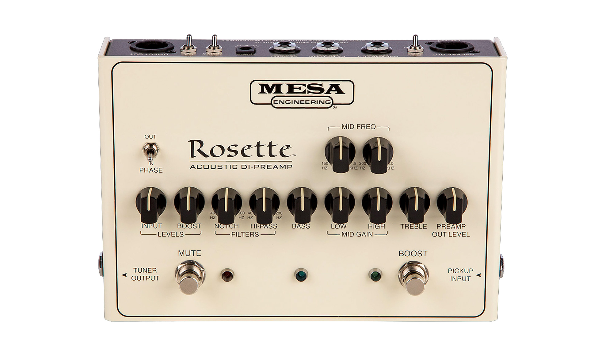 Il Rosette Acoustic DI Preamplifier è invece un pedale che offre allo strumentista acustico la possibilità di collegarsi all’impianto di amplificazione o di registrare in diretta mantenendo le caratteristiche del proprio suono naturale.