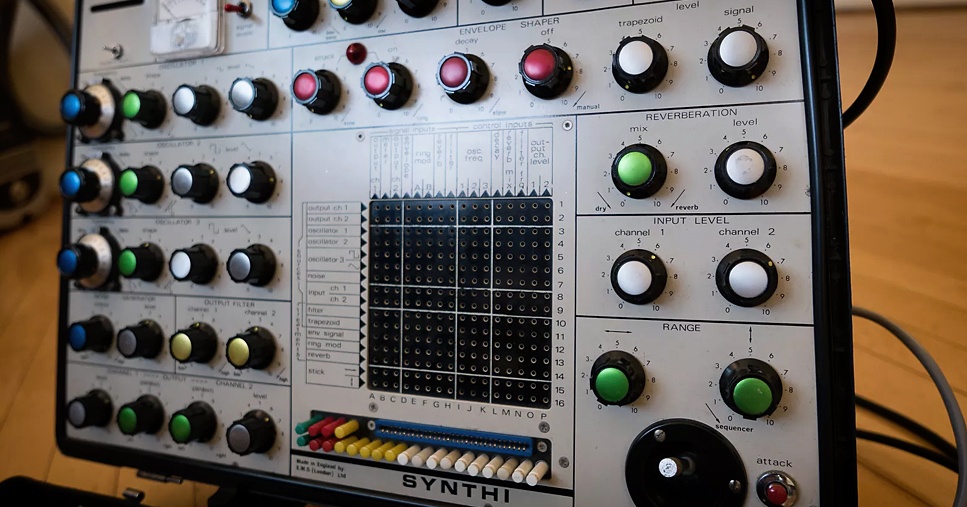 C’è ad esempio l’EMS Synthi AKS (in copertina), sintetizzatore analogico portatile ricercatissimo dai collezionisti, prodotto negli anni ’70. Lo avrete sicuramente sentito nella celebre “On The Run” dei Pink Floyd, il secondo brano della pietra miliare The Dark Side of the Moon.