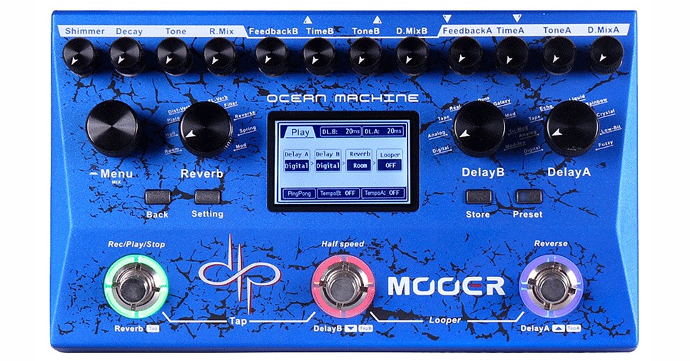 Sviluppata assieme a Devin Townshend, cantante, chitarrista e produttore battezzato nel 1993 da Steve Vai nel suo album Sex & Religion, la Ocean Machine è un’unità True Bypass molto versatile che mette assieme funzioni complete di riverbero, delay e looper per fornire effetti di alta qualità e un alto livello di programmabilità.