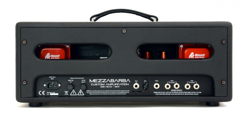 Veniamo al sodo. Siccome era impossibile aggirarsi davanti a quegli amplificatori senza provarne uno (e quando dico impossibile intendo che lo stesso Pierangelo mi avrebbe preso per un orecchio e collegato a un jack) la scelta è ricaduta sull’unico modello che ancora non avevo avuto il piacere di testare sotto le dita, la testata Mezzabarba Z35, che non è semplicemente la versione Head del già noto combo a due coni, visto che il gain a disposizione è il doppio di quest’ultimo.