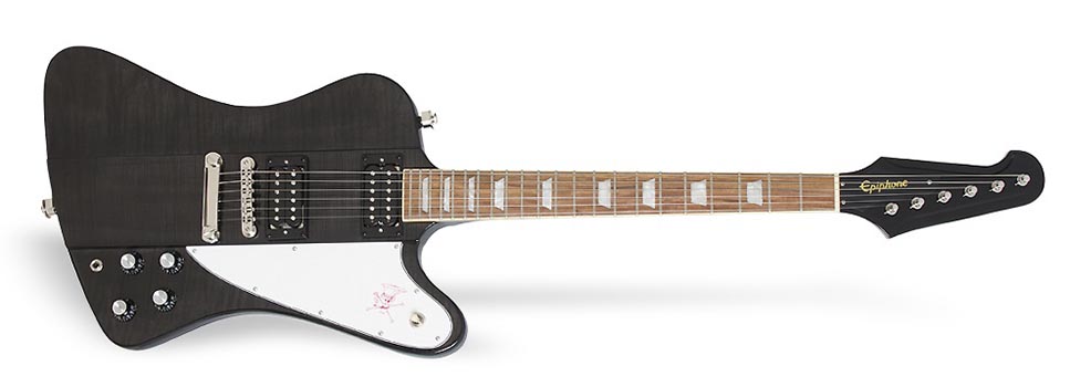 Un’altra parziale anticipazione dell’anno passato è rappresentata dalla Firebird signature del chitarrista dei Guns N’ Roses. Ancora una finitura all’insegna della cupezza (Trans Black), che tuttavia non priva affatto di bellezza il top in acero fiammato AAA, mentre la tastiera è realizzata nel non meno intrigante pau ferro.