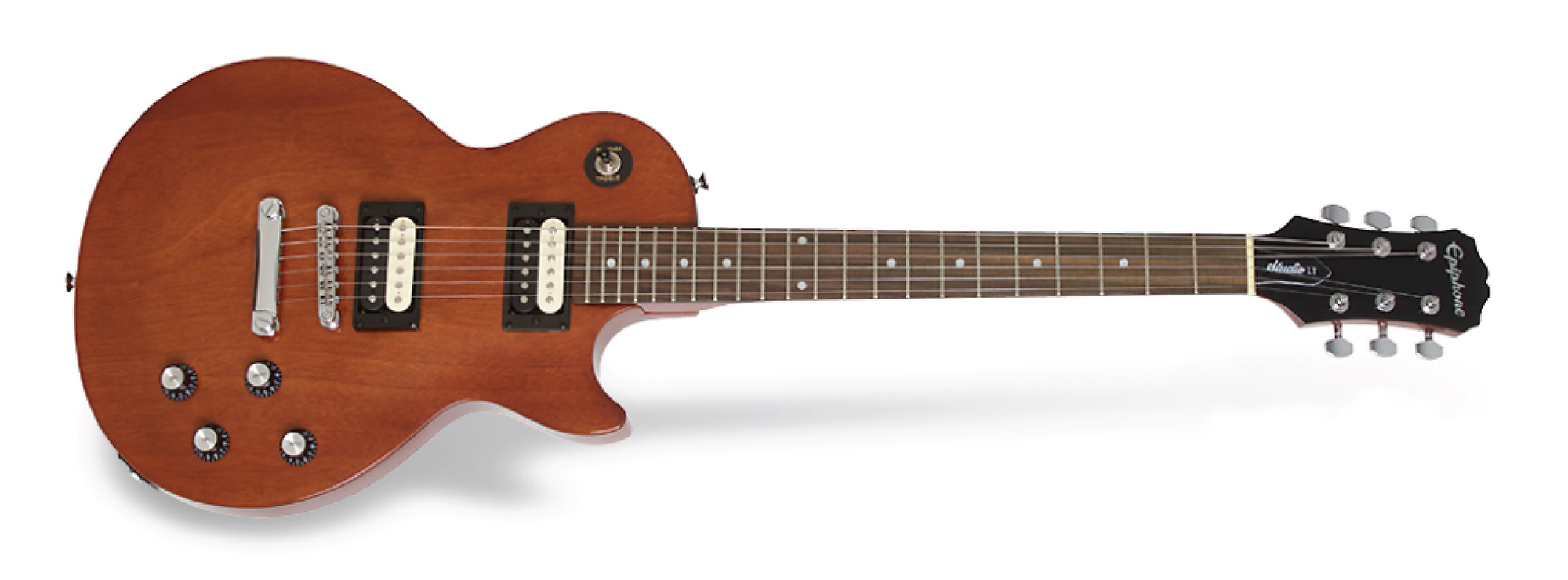 La nuova Studio LT presenta le caratteristiche base di una classica Les Paul come il body in mogano con top scolpito, una coppia di humbucker Epiphone con bobine a contrasto bianco-nero, manico avvitato con sagoma ottimizzata per il migliore accesso agli ultimi tasti.