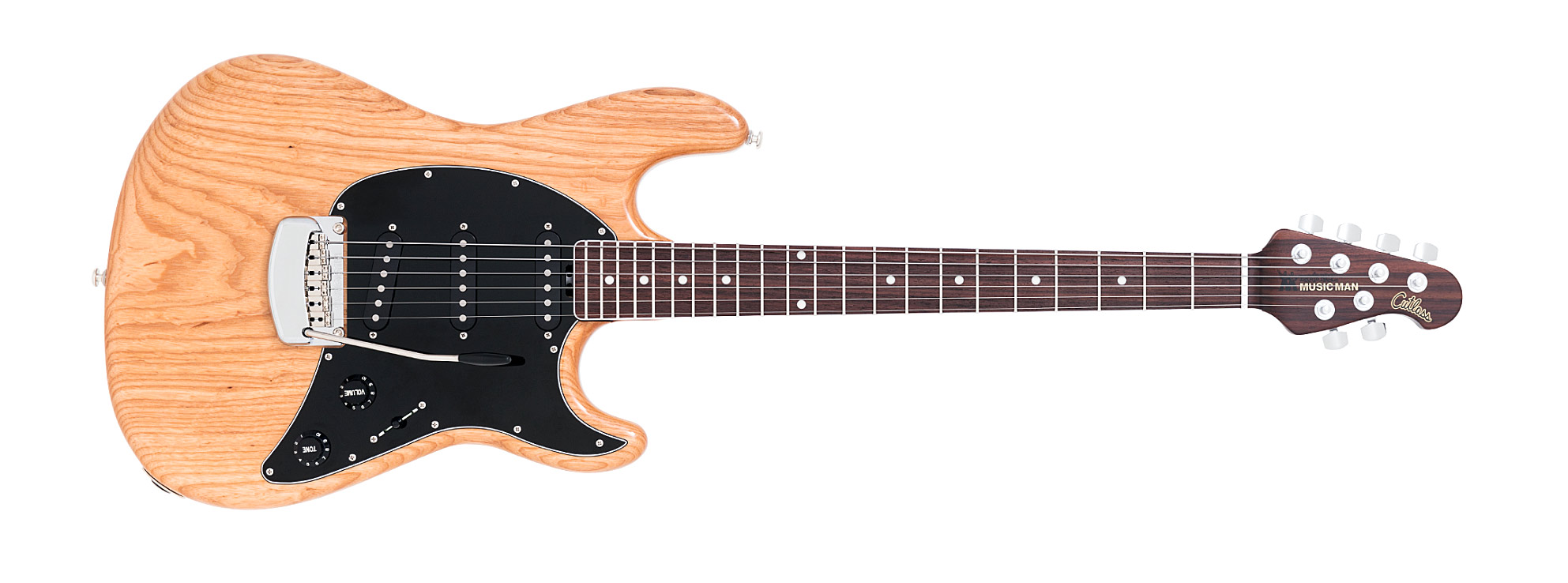 Molto più tradizionale la Cutlass Natural Gloss che ammicca alle origini del marchio Music Man. Qualche pezzo in più, 47, con cassa in ontano lasciata al colore naturale con pickguard nero e tre single coil dello stesso colore.