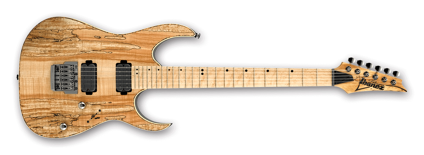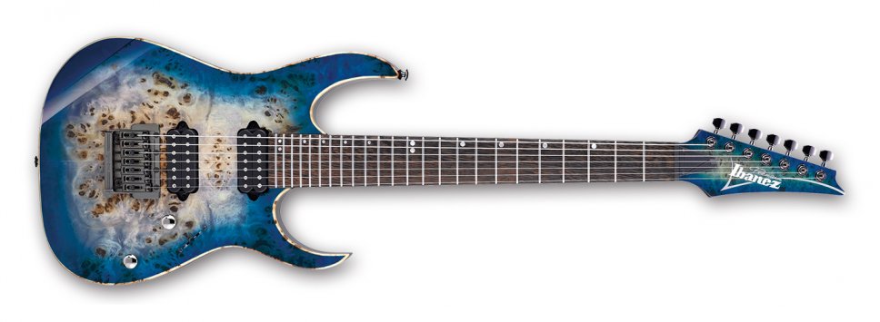 Di notevole effetto la livrea Cerulean Blue Burst e Charcoal Black Burst sullo spesso top in radica di pioppo della RG1070PBZ, con dot segnatasti luminosi sul lato superiore della tastiera. La 7-corde RG1027PBF ne condivide la struttura e il manico a 11 strati di wenge/bubinga/acero/purpleheart, con hardware nero e ponte Tight-End R-7.
