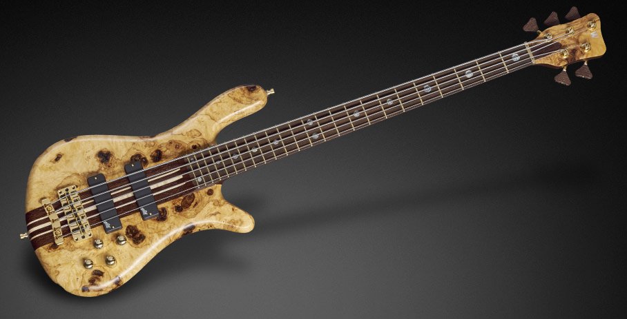 Partiamo dalla serie Custom Shop e dalla novità più eclatante di quest’anno: stiamo parlando dell’Idolmaker Bass, la resa in 4 (ma anche 5) corde del modello di chitarra ideato dall’artista Stevie Salas e da Markus Spangler, capo produzione del marchio tedesco. Il manico a 3 strati di wengè e la coppia di humbucker passivi MEC mantengono lo strumento nella tradizione dei bassi Warwick, le sperimentazione sta soprattutto in design e legni del body (top in mogano pommelè).