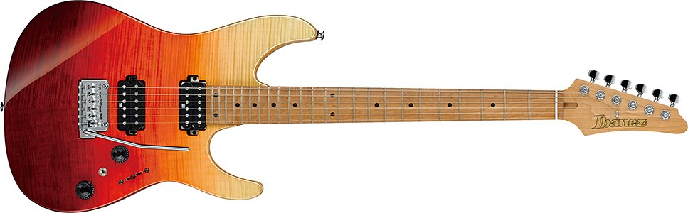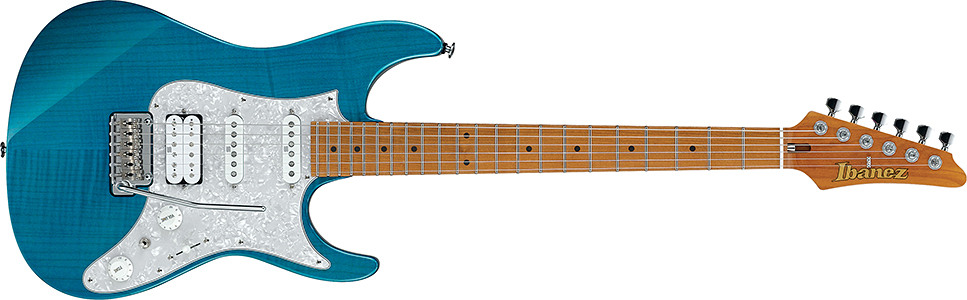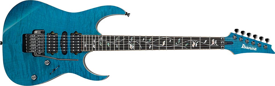 Con la RG950FMZ abbiamo invece un modello Premium con manico in 11 pezzi set di Dimarzio Air Norton,True Velvet e Tone Zone, corpo in tiglio americano e top in acero fiammato.