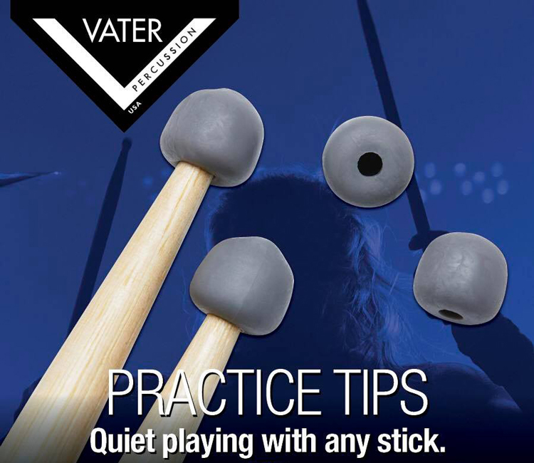 Per potersi allenare al meglio limitando al minimo i rumori e utilizzando qualsiasi superficie come fosse un pad, Vater ha realizzato i Practice Tips, in gomma resistente e flessibile, che possono essere facilmente applicati sopra le punte di qualsiasi bacchetta.