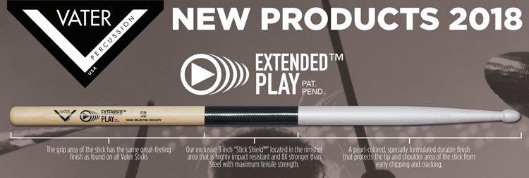 La Vater Extended Play è una bacchetta la cui robustezza è stata aumentata esponenzialmente attraverso l’applicazione di una speciale laccatura nelle sue parti più soggette a rotture, nonché dall’applicazione nell’area del rimshot dello Stick Shield. Quest’ultimo è un cilindro lungo circa 3 pollici realizzato in un materiale otto volte più resistente dell’alluminio.