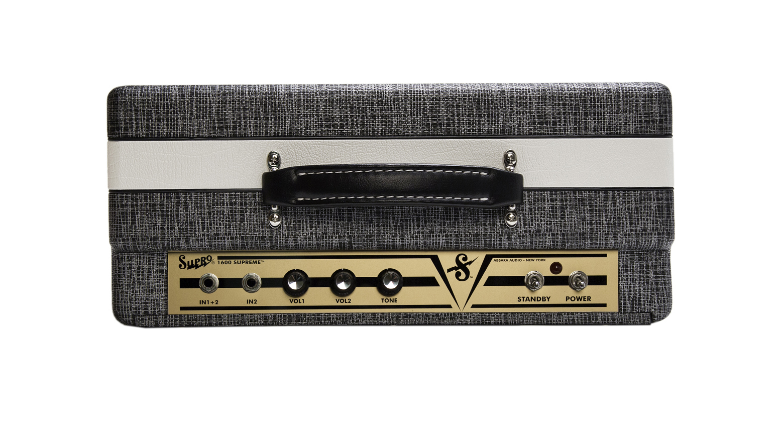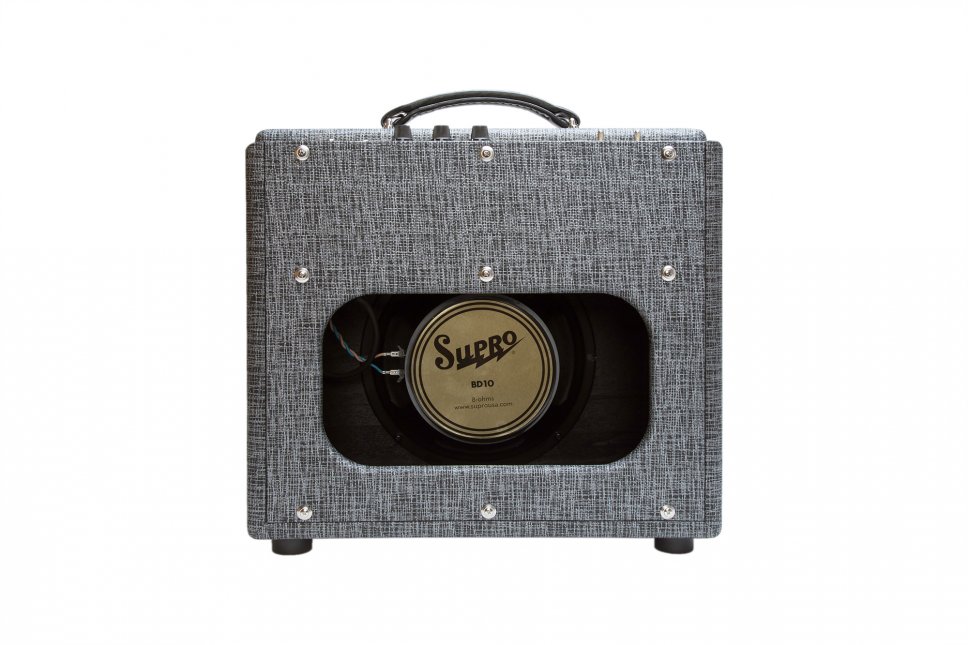 Con 25 watt di potenza il piccolo combo, che non supera i 15 Kg di peso, promette tutte le qualità associate ai prodotti Supro e alle 6V6, con riferimento particolare all’attacco deciso, alla sensibilità al tocco del chitarrista e alla naturale compressione valvolare.