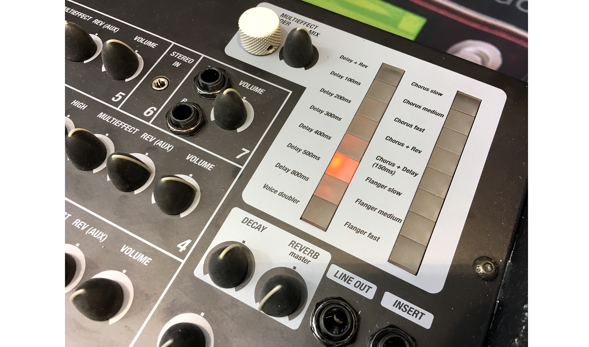 Il tutto è integrato da un ulteriore canale sbilanciato per strumento, un canale stereo per il playback di basi o altro, un FX return utilizzabile a sua volta anche come canale input.