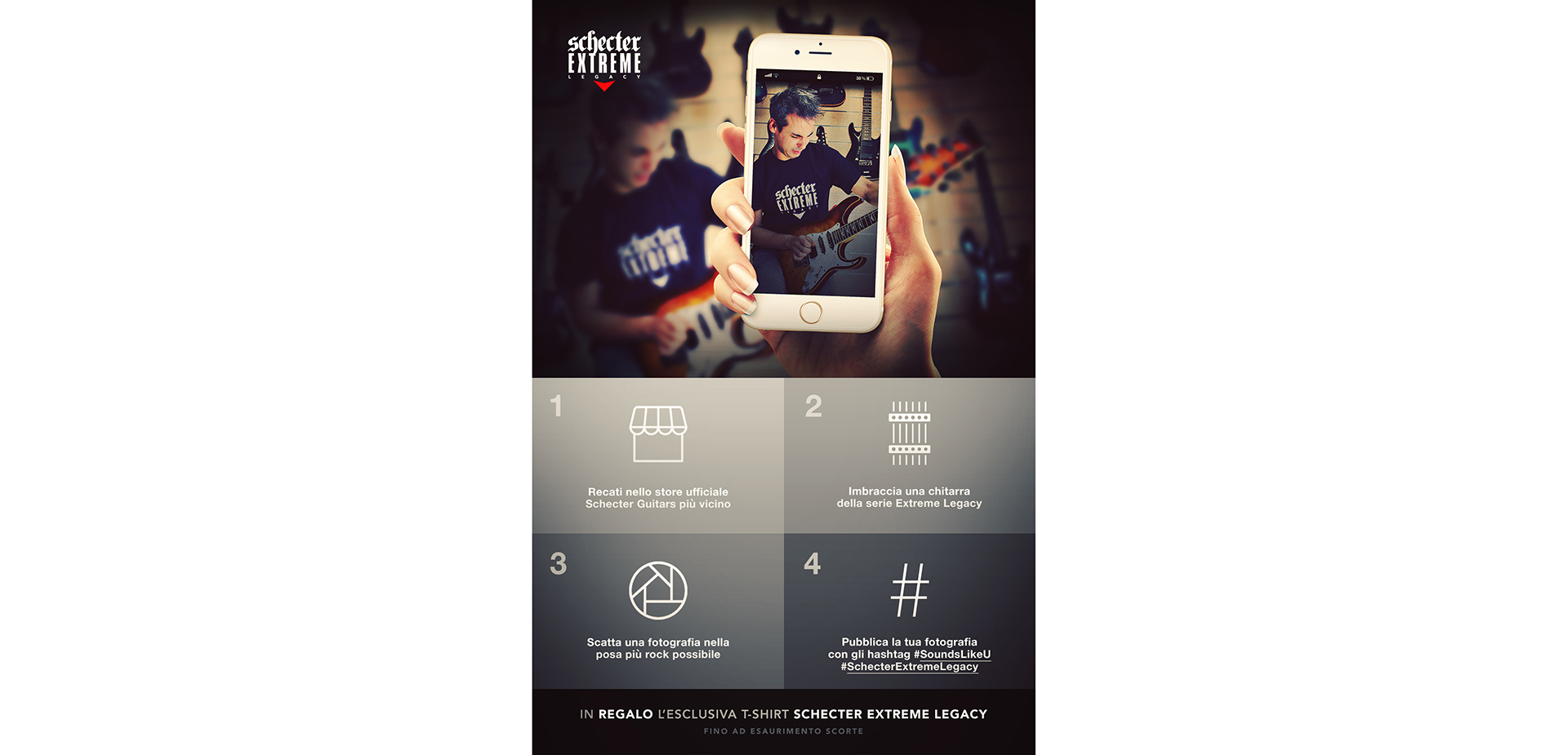 L’iniziativa è molto divertente, basta farsi una foto nella posa più rock possibile con una delle nuove chitarre del marchio presso gli Schecter Point, pubblicarla sui propri canali social Facebook e Istagram inserendo gli hashtag #SchecterExtremeLegacy e #SoundsLikeU e taggando sia il negozio in cui ci si trova che Gold Music.