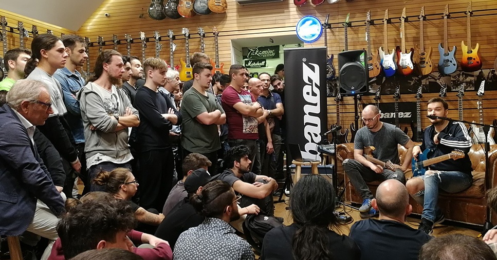 Il negozio di Centro Chitarre, negozio storico per i chitarristi di Napoli e oramai di tutta Italia, ha ospitato una tappa del clinic tour, organizzando il tutto nella sua ampia sala principale, davanti al suo Ibanez Wall.