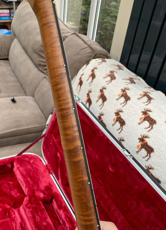 Il corpo è in ontano mentre il manico è realizzato in un bellissimo acero fiammato “roasted”, che gli conferisce una colorazione più scura del normale, sicuramente affascinante.