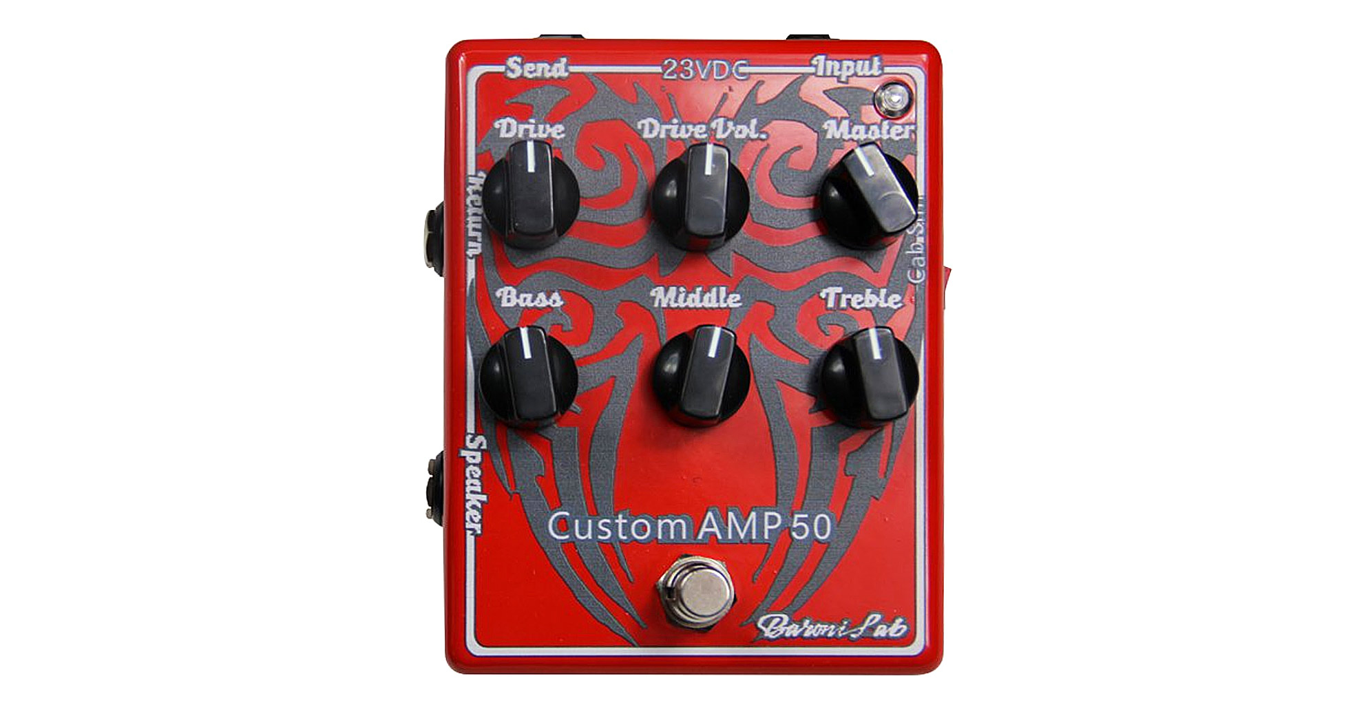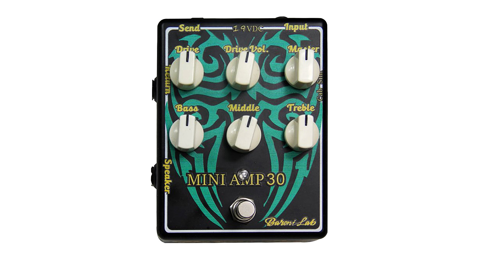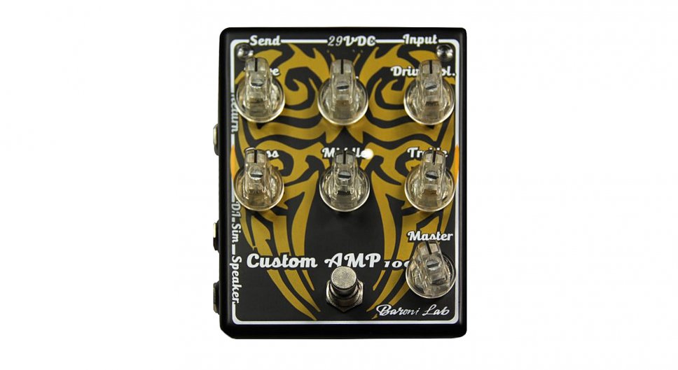 È fornito di FX loop, EQ a tre bande, controlli di Drive, Drive Vol e Master, Cabinet Simulation.