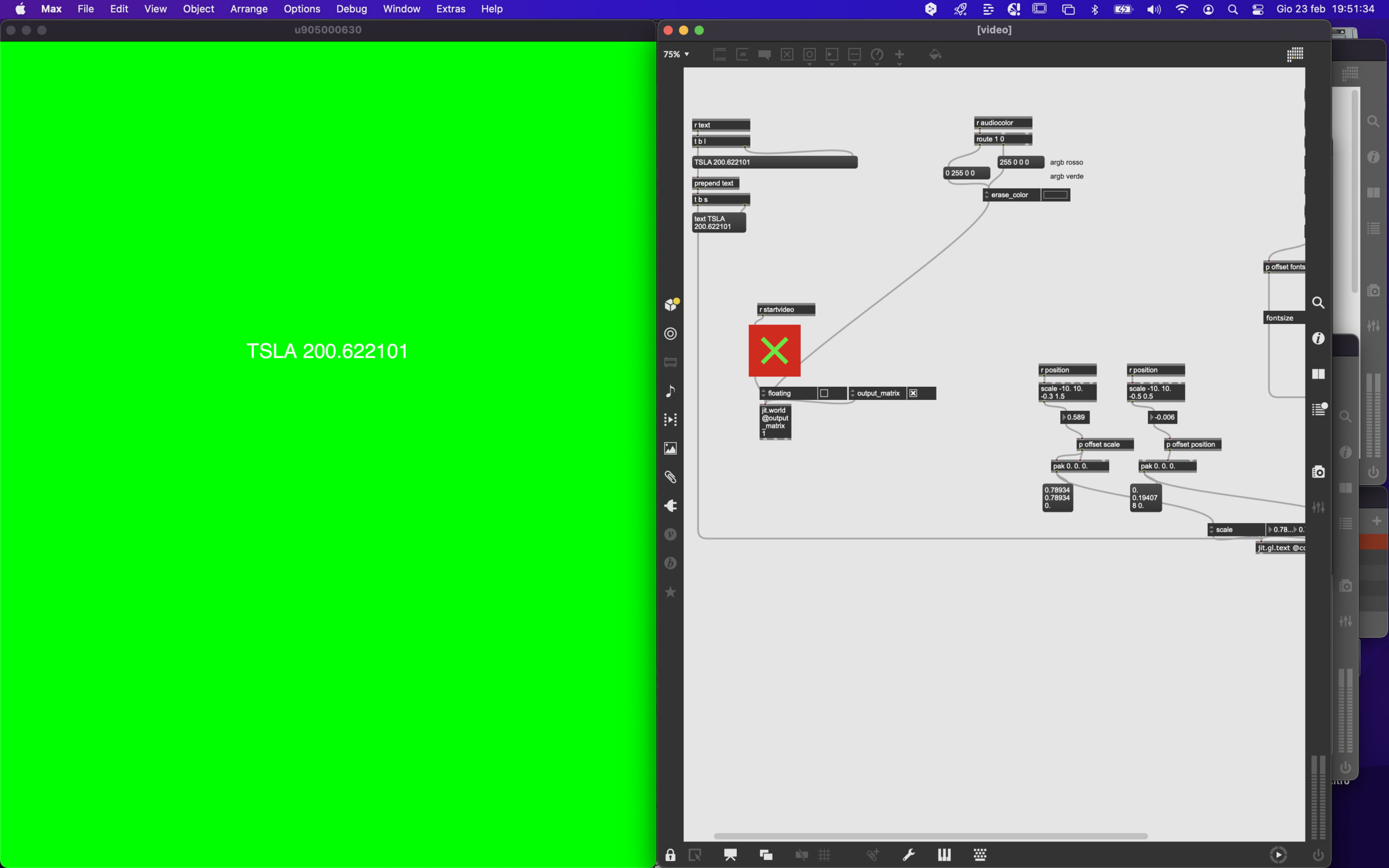 Mariano ha scritto un’applicazione – utilizzando, appunto, il software Max MSP/Jitter – che permette di effettuare una sonificazione in tempo reale delle azioni di Yahoo Finance. In particolare, ha dato suono alle azioni della nota compagnia automobilistica Tesla.