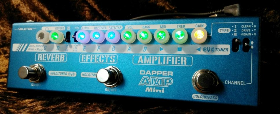 Il Dapper Mini Amp è a tutti gli effetti un preamplificatore per chitarra con nove tipologie di suoni ottenibili, che spaziano dai clean fino ai lead più estremi, con l’aggiunta di un comparto effetti e la possibilità di entrare direttamente nell’impianto attraverso una simulazione di cassa, che ne permette anche l’uso in cuffia.