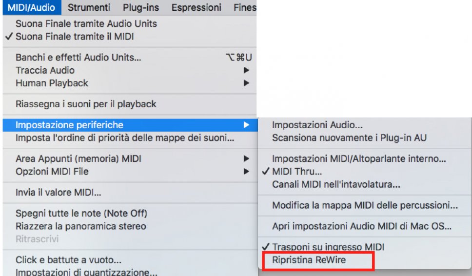 È stato inserito il protocollo Rewire e tolto il playback video. Questa funzione vi permette d’interagire con più software contemporaneamente sincronizzandoli con Finale. Quindi, per esempio, se dovessimo fare un lavoro di audio e video potremmo avere contemporaneamente aperto per la gestione video Final cut o simili (in funzione Rewire), Finale per la notazione, ed entrambe sincronizzarli con Studio One per quanto riguarda la gestione dell’audio.