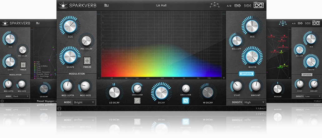 Sparkverb è un riverbero digitale, diverso, che non richiama nessun tipo di hardware vintage o moderno, ma approccia a questo tipo di effetti con un sistema di selezione rapido e innovativo, lasciando l’intuizione lavorare agevolmente come nessuno prima.