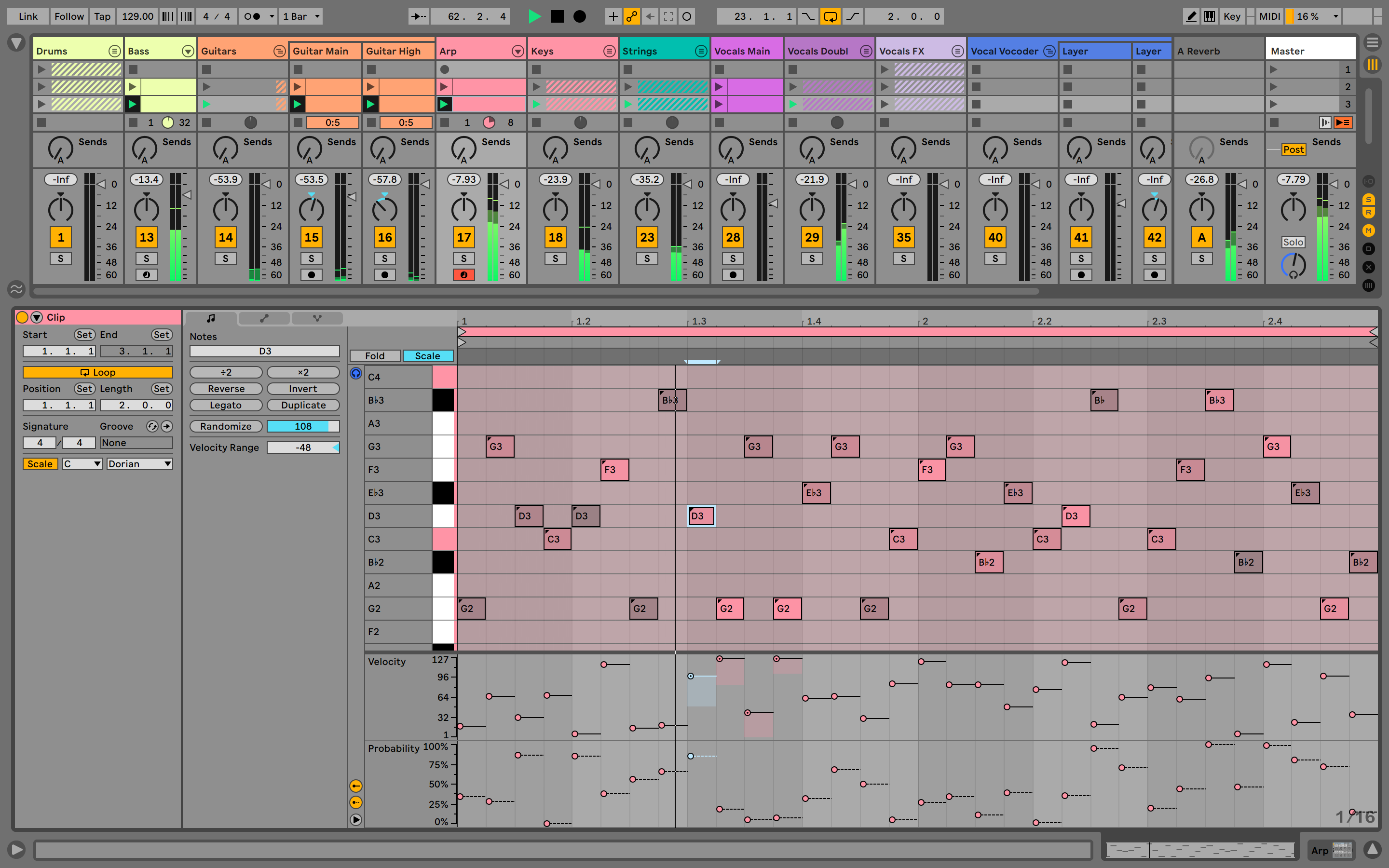 • Probabilità della Velocity – Definisce gli intervalli di probabilità di velocity per creare delle leggere variazioni di dinamica umanizzate.