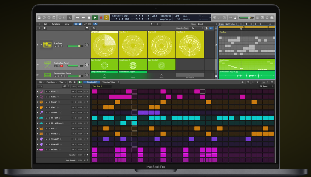 Per quanto riguarda Step Sequencer, parliamo di un nuovo editor di Logic per programmare percussioni, bassi e componenti melodiche con un interfaccia ispirata alle drum machine.