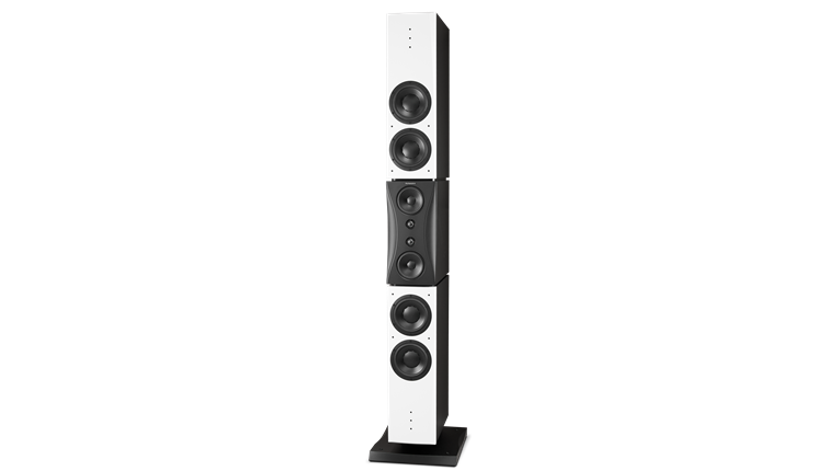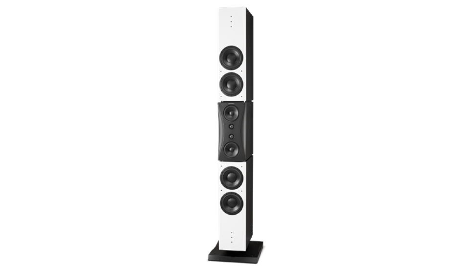 Passando alla sezione centrale, i due medi e i due tweeter a cupola morbida sono integrati nell’apposito sub-involucro in alluminio che è completamente schermato da vibrazioni acustiche; la scelta dei materiali ed i suoi lati arrotondati assicurano una dispersione del suono uniforme e non-colorata.