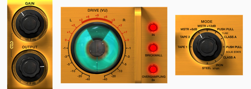 IK Multimedia ha pensato di rendere il plugin Saturator X intuitivo ed estremamente facile da usare. Funziona impartendo distorsione nel percorso del segnale digitale che per sua natura non è predisposto per alterare la linearità della risposta in frequenza e la struttura armonica di un segnale. L’introduzione di distorsione simula quindi la circuiteria analogica ed il modo di controllare questo effetto si basa su: un Input Gain ed un Output Drive, il selettore della modalità di saturazione, un Brickwall limiter (se attivato assicura che la distorsione non superi mai un livello tale da rovinare la registrazione).e la possibilità di oversampling (che fornisce una più alta definizione del suono, offrendo una migliore resa sulle armoniche e sulla qualità complessiva del trattamento della traccia audio).