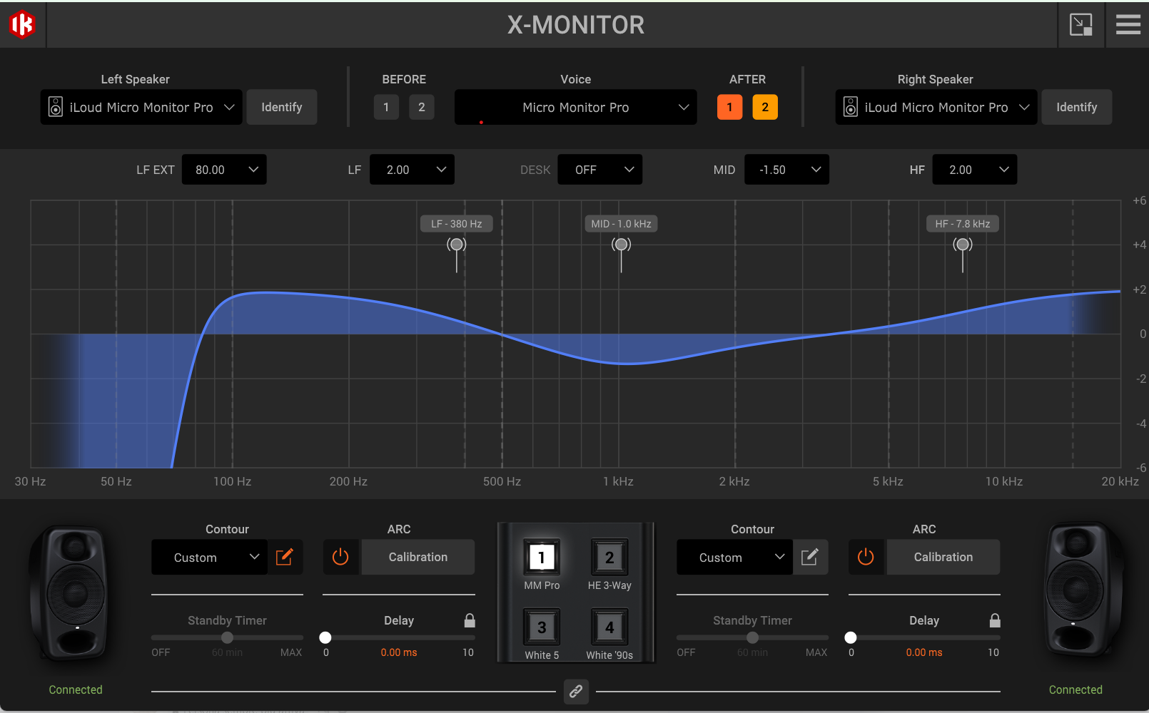 Differenze immediate (perdonatemi se lapalissiane): i due woofer dei monitor MTM MK II lavorano con meno sforzo del singolo woofer dei Micro e i 5 Voicing in più offrono maggiore versatilità rispetto al Micro… ricordo, tutto editabile a orecchio.
