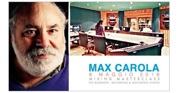 Max Carola è un nome illustre all’interno del mondo della fonia italiana ed internazionale, sia in veste di fonico che in quella di produttore discografico nonché musicista; la sua carriera è lunga e costellata di collaborazioni di massimo livello, basti fare qualche nome come Aerosmith, Roxette, INXS, Pino Daniele, Zucchero, Simple Minds, Solomon Burke (qui sotto in foto) e molti altri.