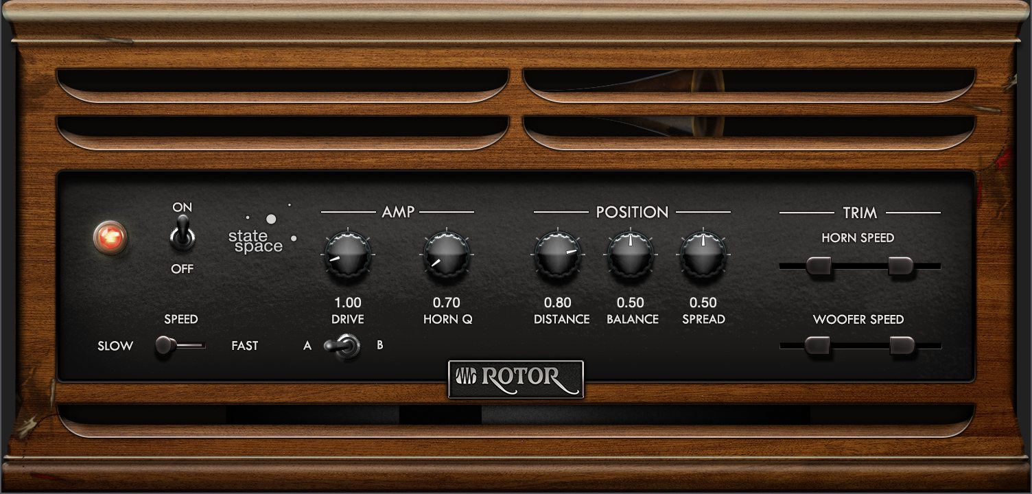 Il Rotor offre la possibilità di gestire separatamente la velocità di rotazione delle trombe e del woofer permettendoci di ricreare il magico sound gospel e rock che ha segnato gli anni 70.