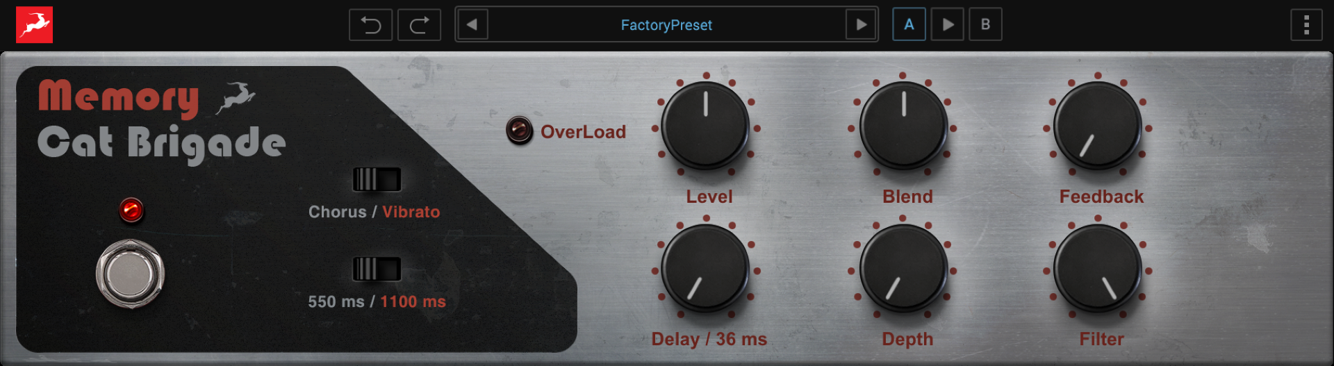 Il plugin Memory Cat modella l’iconico pedale Electro-Harmonix Deluxe Memory Man degli anni ’80, noto per il suo effetto eco a nastro simulato, famoso per essere stato usato da artisti come The Edge degli U2 e Robert Smith dei The Cure.