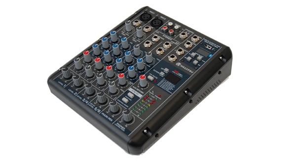 La maggiore disponibilità di spazio è sfruttata per inserire un display sia per la sezione FX, ampliata a 256 effetti, che per la sezione USB, da usare come lettore o registratore. Infine i potenziometri rotativi dei livelli degli ingressi, del ritorno FX e del MAIN sono sostituiti da fader che consentono un controllo di maggiore precisione. Utilissimo per tutte le applicazioni del fratello minore ma anche per piccoli ensemble acustici, cui bastano i quattro ingressi mono, o sale prova.