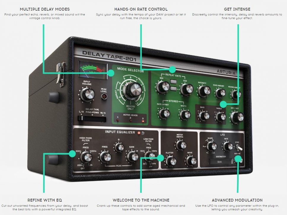 Arturia lancia sul mercato la simulazione di uno degli echo più conosciuti al mondo, il Roland Space Echo, da oggi in formato plug-in con il nome di DELAY TAPE 201.
