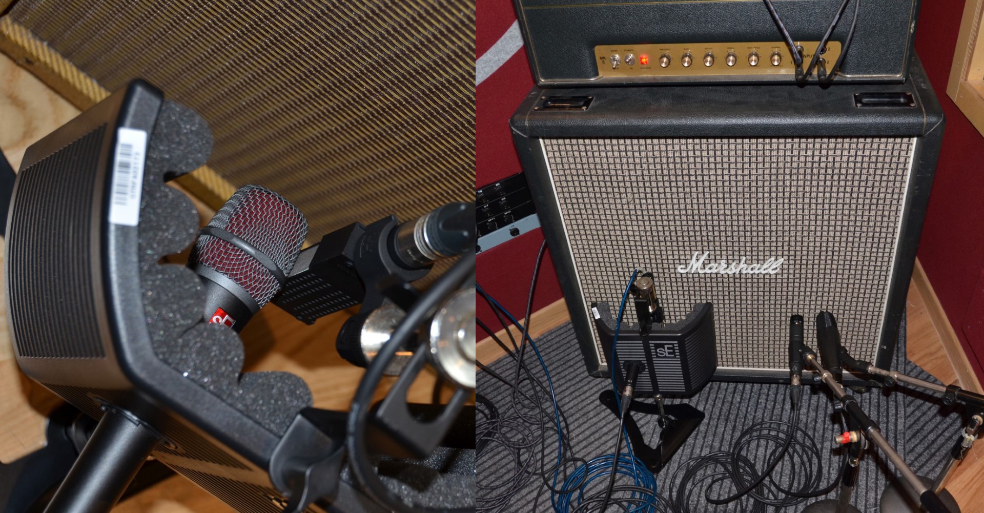 Microfonazione della chitarra elettrica e particolare (dx) dei mic sE Electronics